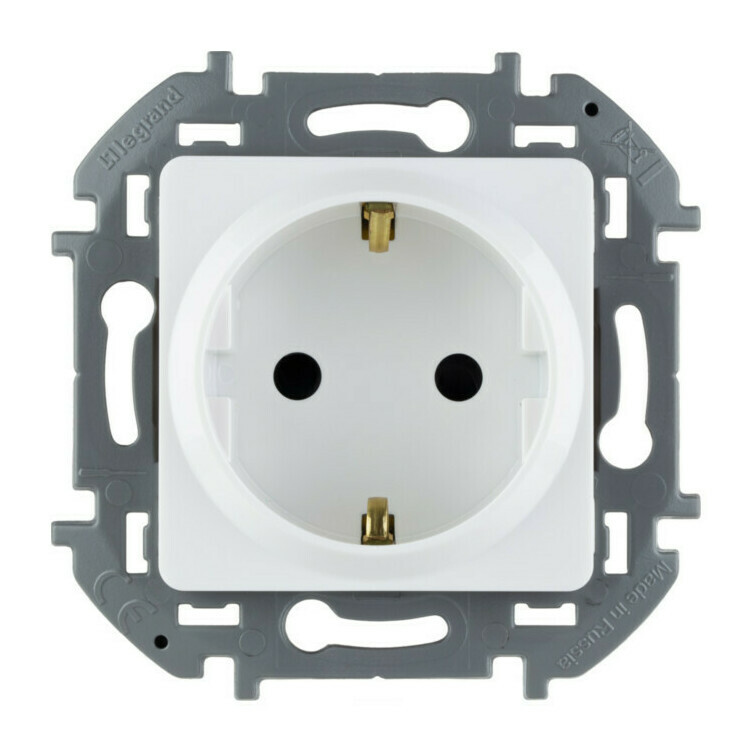 Розетка Legrand INSPIRIA, скрытый монтаж, с заземлением, со шторками, белый, 673730