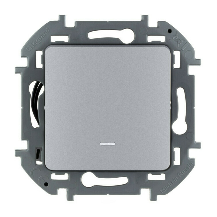 Выключатель 1-клавишный Legrand INSPIRIA с подсветкой, алюминий, 673612